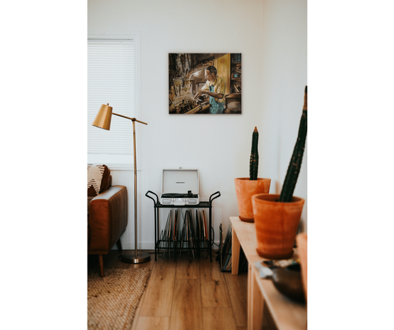Du stimmst mir vielleicht zu, wenn ich sage, der Beginn eines neuen Projekts ist immer wieder etwas ganz besonderes. Vor uns eröffnet sich eine Welt voller neuer Möglichkeiten. Hier treffen wir die wichtigen, großen Entscheidungen und erschaffen bereits eine Art ‚Prototypen‘ in unserem Kopf. Wir wählen Materialien und Herangehensweisen aus und überlegen uns Lösungen für die Schwierigkeiten und Herausforderungen, die das neue Projekt mit sich bringt. Es ist dieser magische Moment, in dem du das rohe Grundmaterial in deinen Händen hältst aber bereits ein Bild des vollendeten Werkstücks in deiner Vorstellung entsteht. Im Fall des Geigenbauers wird bereits in diesem Moment die Melodie angestimmt, welche oft erst Monate oder Jahre später durch den Musiker ein Publikum erreicht. In jedem Handgriff zeigt sich eine Fingerfertigkeit, die wie bei dem Musiker über Jahre hinweg einstudiert und verfeinert wurde. Diese Hingabe, die von Beginn an aus einem rustikalen Holzklotz ein filigranes Stück Handwerkskunst erschafft, möchte ich mit diesem Bild nach außen tragen. Es soll dem Betrachter die Zuversicht geben, dass seine Arbeit und Hingabe irgendwann Früchte trägt. Manchmal sind wir als einzige begeistert von der Geige in unseren Händen, während andere uns den Holzklotz in unserer Hand absprechen wollen. Aber auch, wenn wir die einzigen sind, die das große Ganze sehen, lohnt es sich dranzubleiben und an unserer Vision festzuhalten. Irgendwann kommt der Moment, an dem wir mit dem vollendeten Werk unsere stille Werkstatt verlassen. Dann erkennt auch der Rest, was wir von Anfang an gesehen haben und warum es richtig war, diesem inneren Drang nachzugehen.